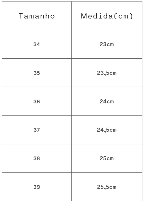 Tamanho: Forma Normal. Aconselhamos a compra de sua numeração de uso habitual.