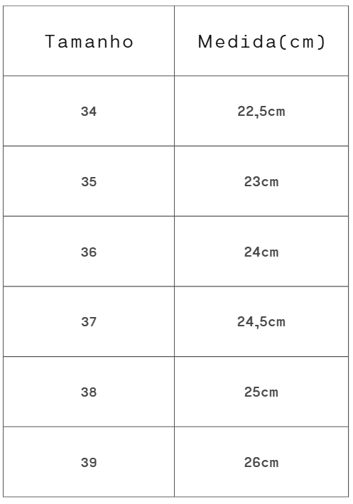 Tamanho: Forma Normal. Aconselhamos a compra de sua numeração de uso habitual.