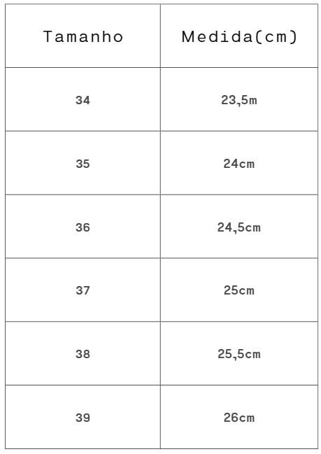 Tamanho: Forma Normal. Aconselhamos a compra de sua numeração de uso habitual.