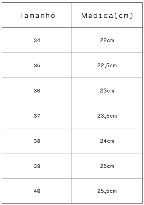 Altura do Salto/Solado: 2,5cm