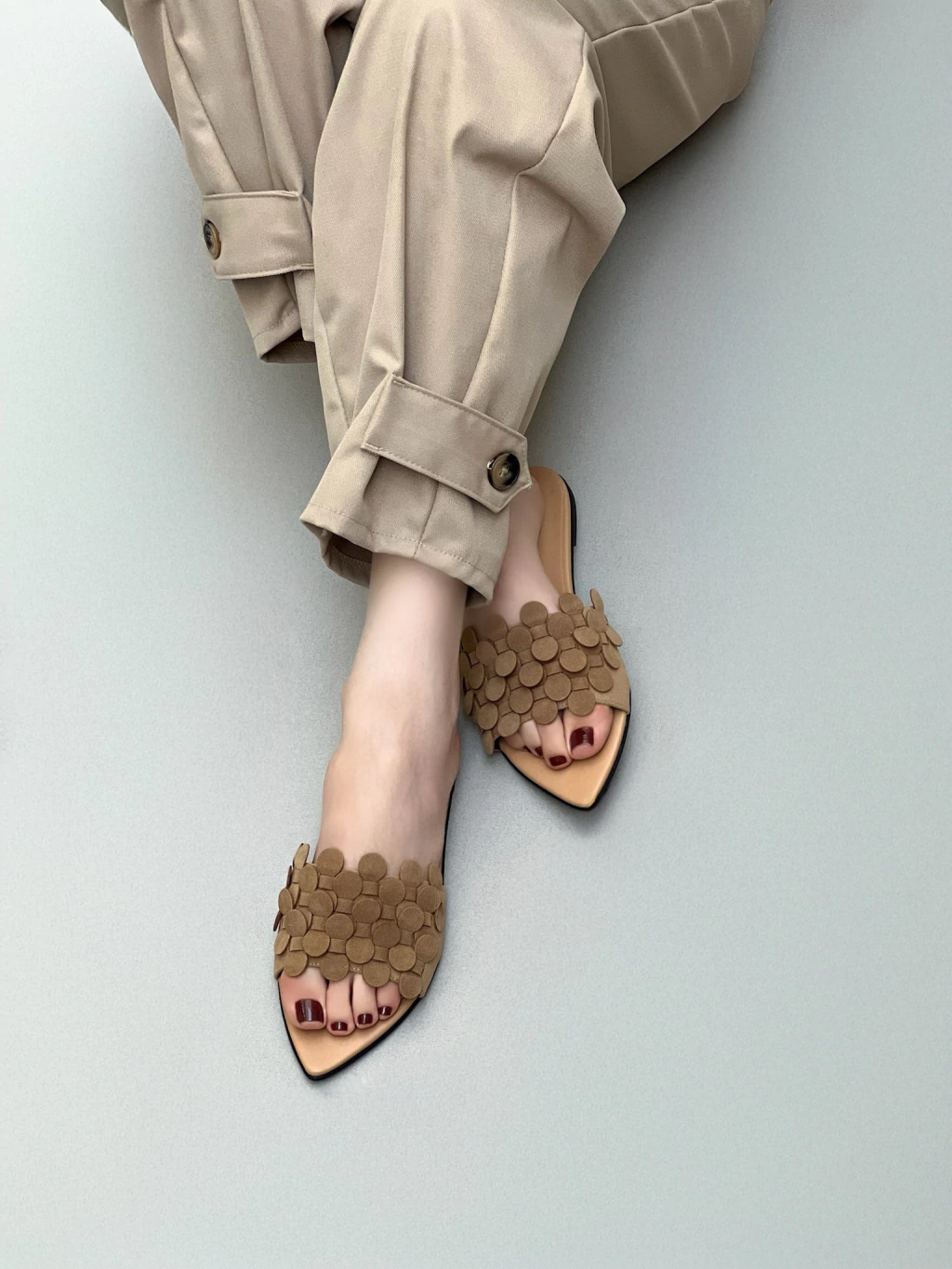 A Flat Bloom é aquele tipo de rasteira que deixa qualquer look mais estiloso sem esforço. Com detalhe em aplicações circulares supermodernas, ela é confortável, versátil e cheia de charme. Perfeita pra te acompanhar no dia a dia ou em momentos de lazer com muito estilo.
