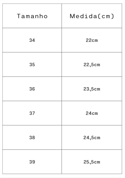 Tamanho: Forma Normal. Aconselhamos a compra de sua numeração de uso habitual.