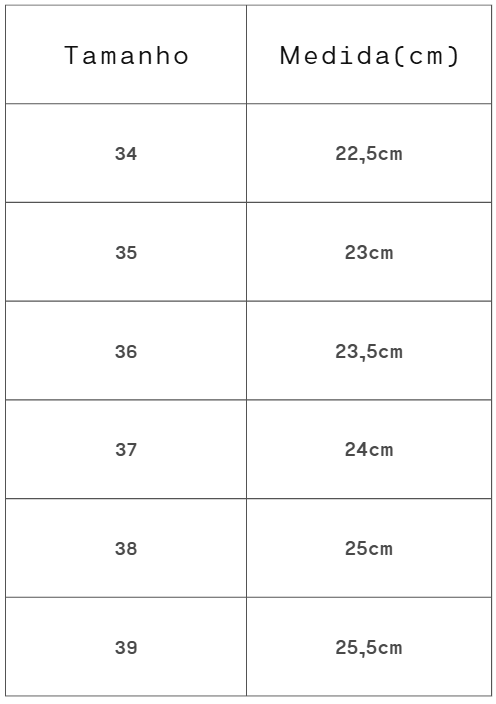 Altura do Salto/Solado: 1cm