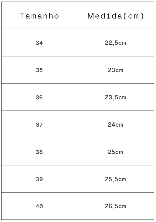 Tamanho: Forma Normal. Aconselhamos a compra de sua numeração de uso habitual.