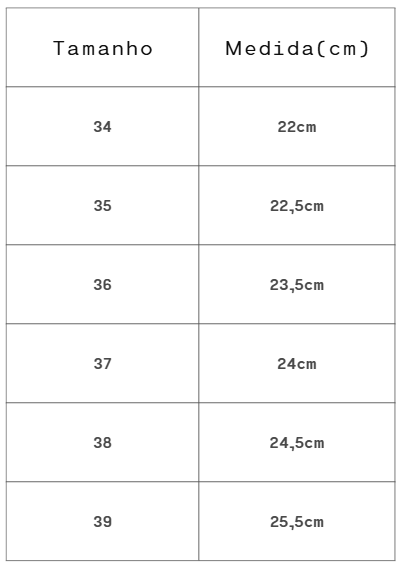 Tamanho: Forma Normal. Aconselhamos a compra de sua numeração de uso habitual.