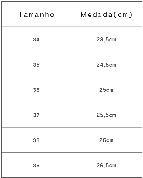 Tamanho: Forma Grande. Aconselhamos a compra de uma numeração menor que a sua de uso habitual.