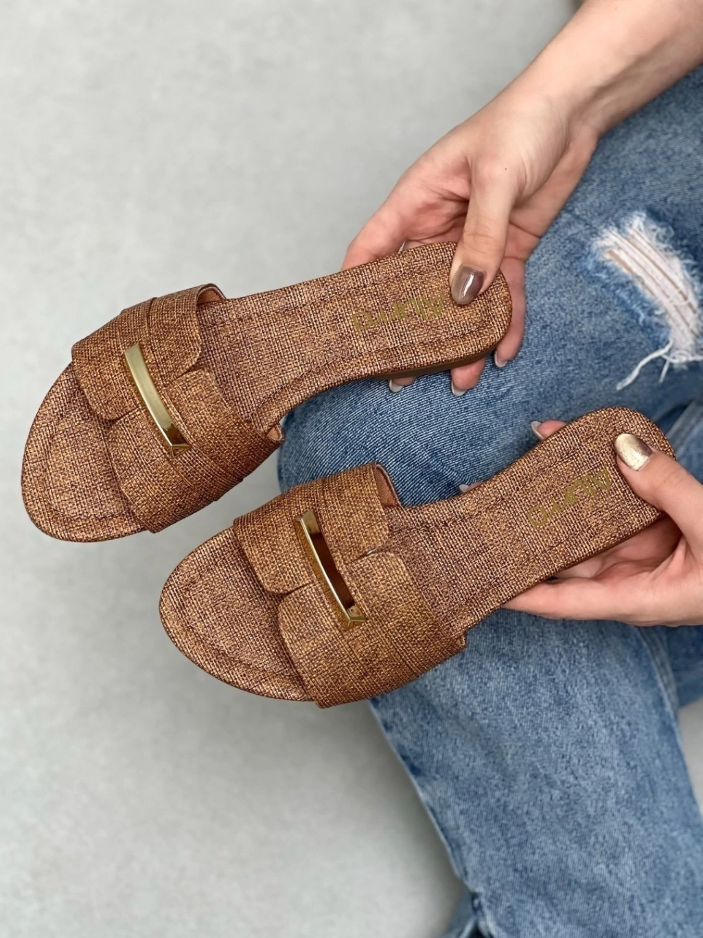 Essa rasteira é o tipo de modelo que transforma o básico em algo chique sem esforço. O cabedal com textura marcante ganha destaque com o detalhe metálico central, que adiciona um toque moderno e refinado. Confortável e versátil, ela é perfeita tanto para o dia quanto para a noite, combinando com looks casuais ou produções mais elegantes.