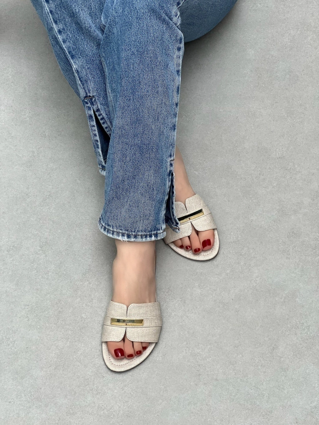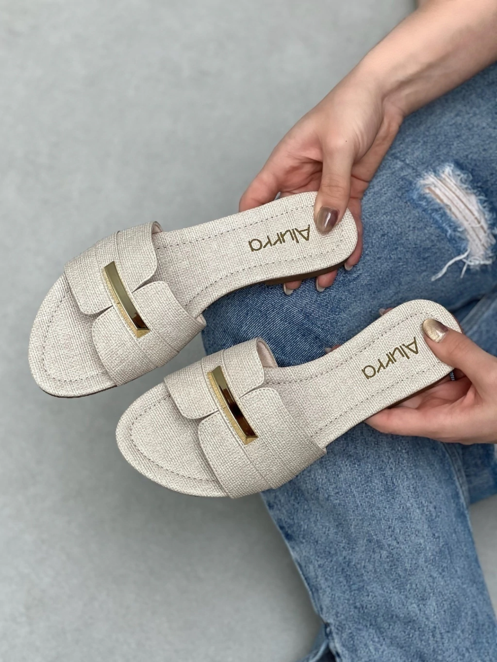 Essa rasteira é o tipo de modelo que transforma o básico em algo chique sem esforço. O cabedal com textura marcante ganha destaque com o detalhe metálico central, que adiciona um toque moderno e refinado. Confortável e versátil, ela é perfeita tanto para o dia quanto para a noite, combinando com looks casuais ou produções mais elegantes.