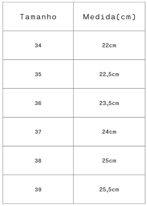 Tamanho: Forma Normal. Aconselhamos a compra de sua numeração de uso habitual.