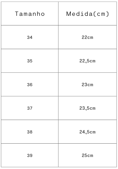 Tamanho: Forma Normal. Aconselhamos a compra de sua numeração de uso habitual.