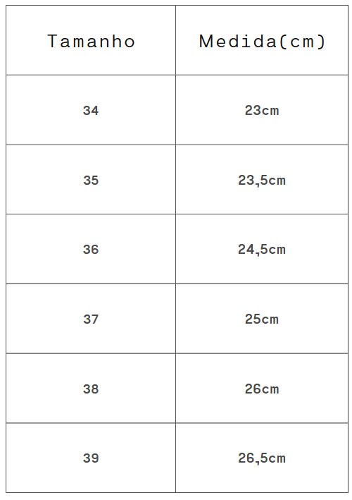 Altura do Salto/Solado: 1cm