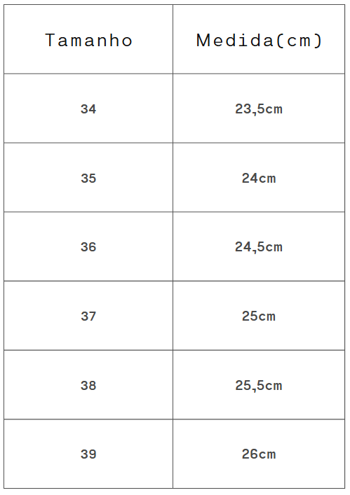 Tamanho: Forma Grande. Aconselhamos a compra de uma numeração menor que a sua numeração de uso habitual.