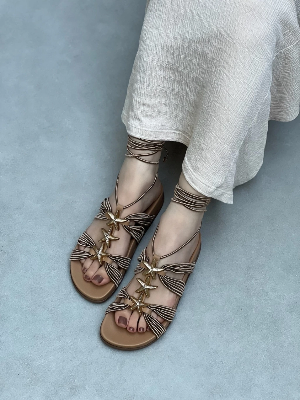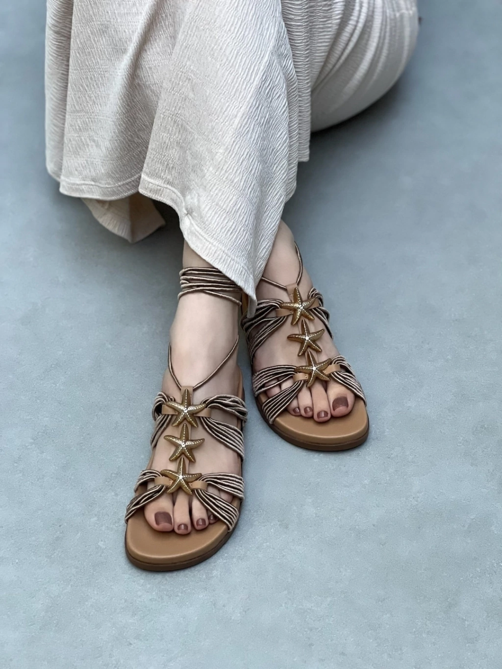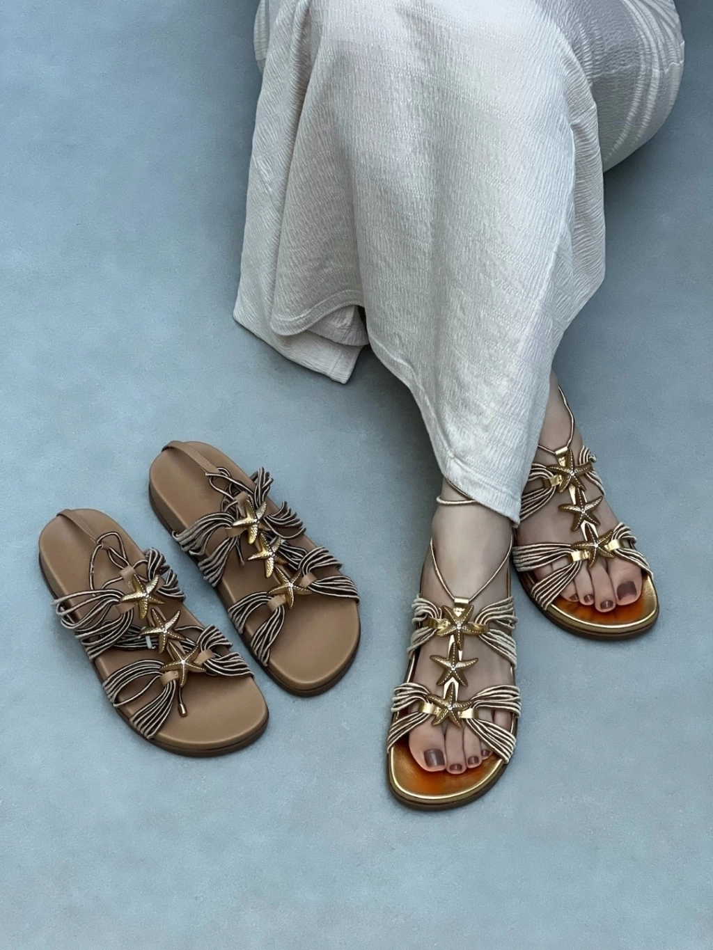 Esse modelo é a cara do glamour! O nude traz a sofisticação, enquanto as aplicações em formato de estrelas na parte de cima transformam o design em algo único e cheio de estilo. As tiras que amarram no tornozelo adicionam ainda mais charme, garantindo um visual moderno e marcante. Ideal para compor produções poderosas, é o tipo de calçado que rouba a cena e deixa qualquer look inesquecível.