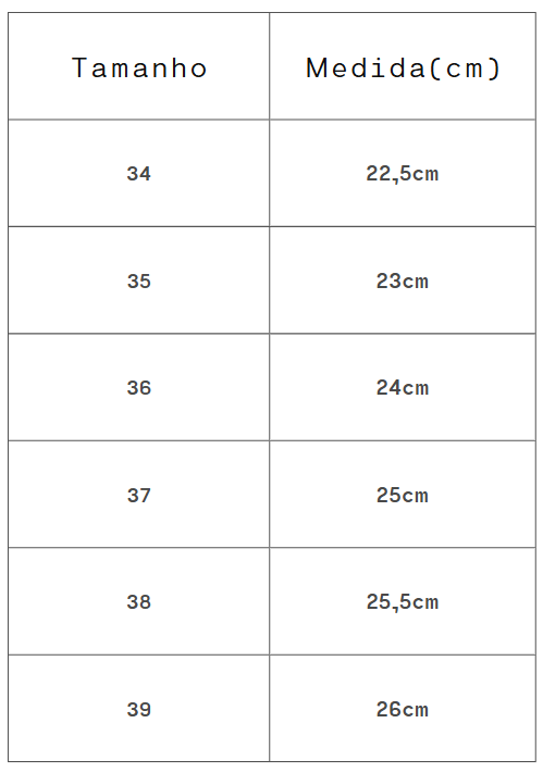 Tamanho: Forma Normal. Aconselhamos a compra de sua numeração de uso habitual.