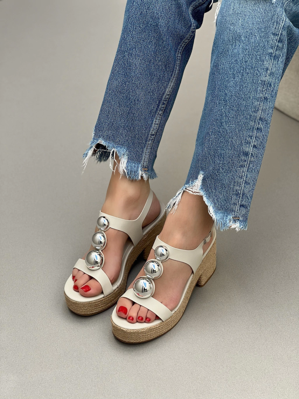 Transforme seu look com a linda Anabela, uma peça que exala modernidade e impacto. Sendo parte da coleção Anastasia, esta sandália é a escolha perfeita para quem deseja arrasar em qualquer ocasião. Com aplicações esféricas e um salto revestido em corda, ela oferece uma beleza singular que destaca a elegância e estilo único de quem a usa.