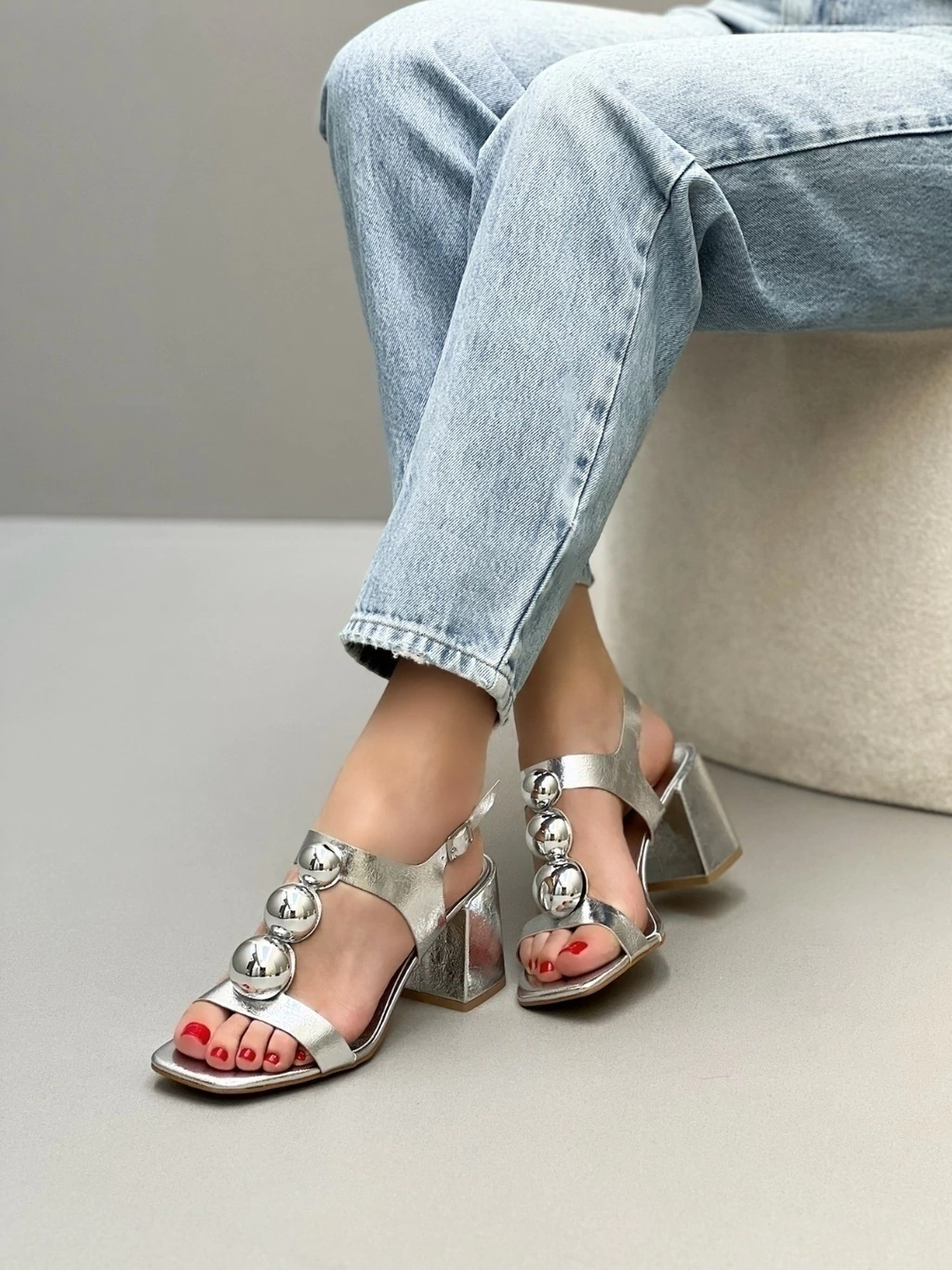 Nossa Sandália Anastasia traz um ar de modernidade e impacto ao look, com aplicações esféricas que conferem uma beleza singular à peça. Ideal para quem deseja arrasar em qualquer ocasião, essa sandália se destaca pela sua elegância e estilo único.