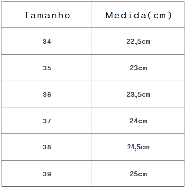 Tamanho: Forma Normal. Aconselhamos a compra de sua numeração de uso habitual.