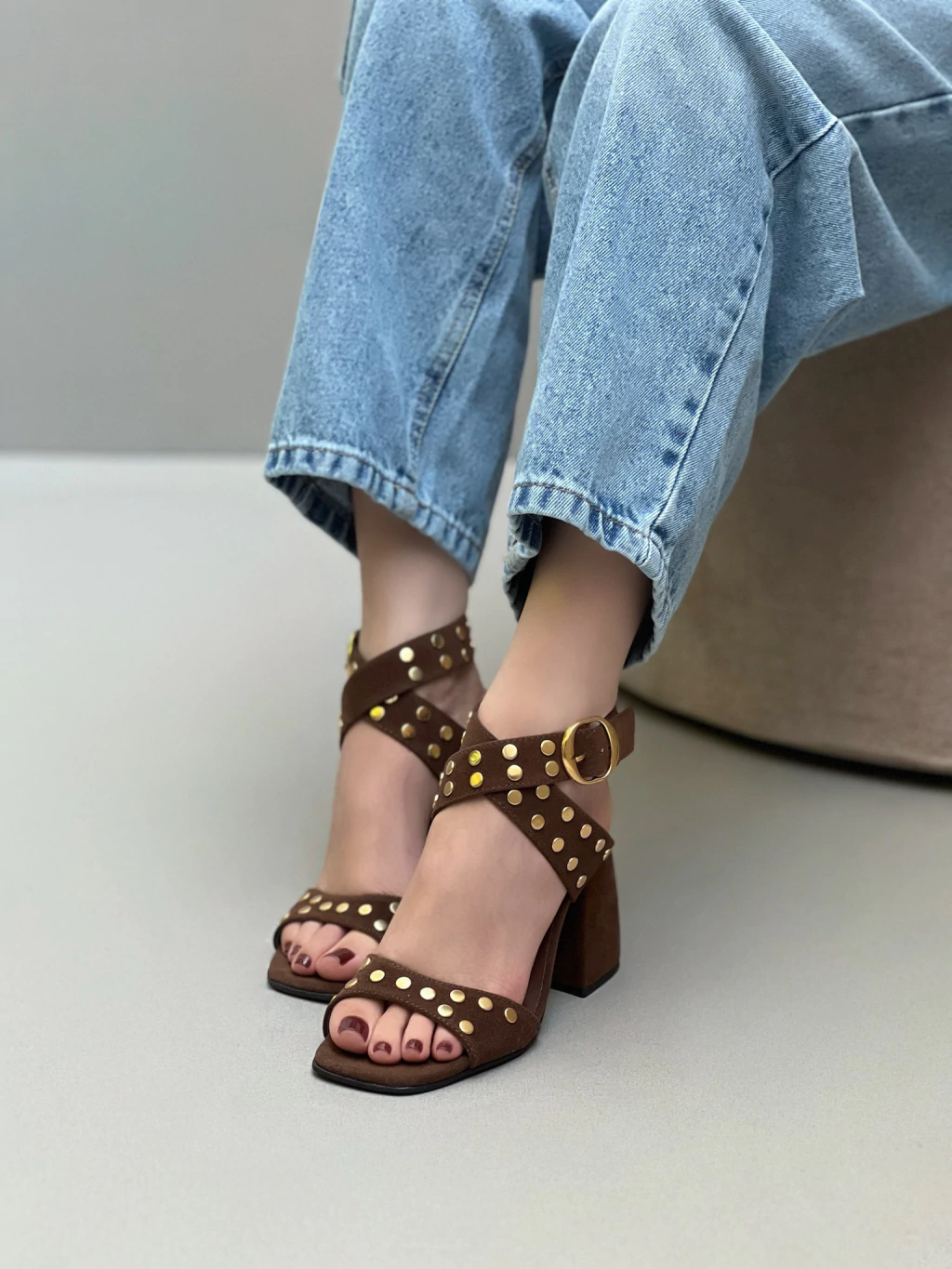 A Sandália Kendall é puro charme em camurça. Com aplicações metálicas douradas que iluminam o design, ela equilibra modernidade e sofisticação. O salto bloco, além de elegante, garante estabilidade e conforto para acompanhar você do dia a dia a ocasiões especiais.