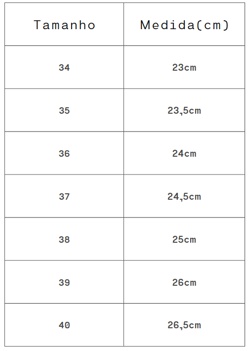 Tamanho: Forma Normal. Aconselhamos a compra de sua numeração de uso habitual.