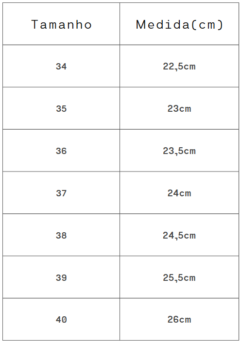 Tamanho: Forma Normal. Aconselhamos a compra de sua numeração de uso habitual.