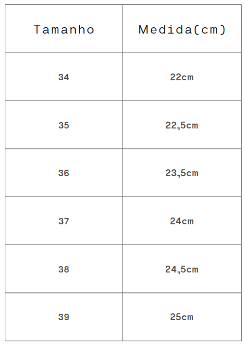 Tamanho: Forma Normal. Aconselhamos a compra de sua numeração de uso habitual.