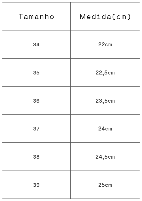 Tamanho: Forma Normal. Aconselhamos a compra de sua numeração de uso habitual.