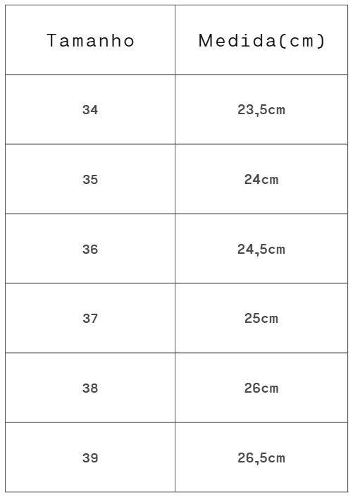 Tamanho: Forma Grande. Aconselhamos a compra de uma numeração menor que a sua de uso habitual.