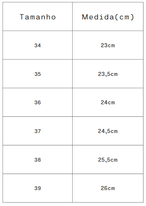 Tamanho: Forma Normal. Aconselhamos a compra de sua numeração de uso habitual.