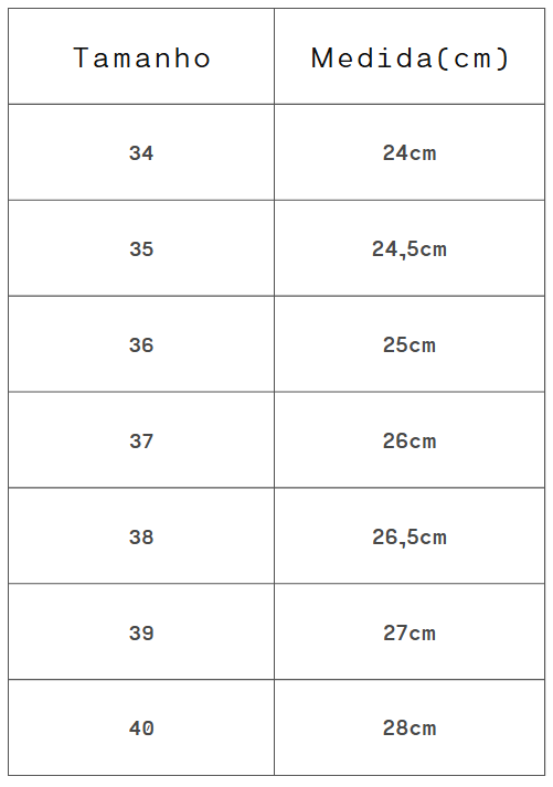 Tamanho: Forma Normal. Aconselhamos a compra de sua numeração de uso habitual.
