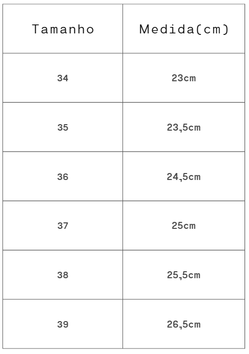 Tamanho: Forma Grande. Aconselhamos a compra de uma numeração menor que a sua de uso habitual.