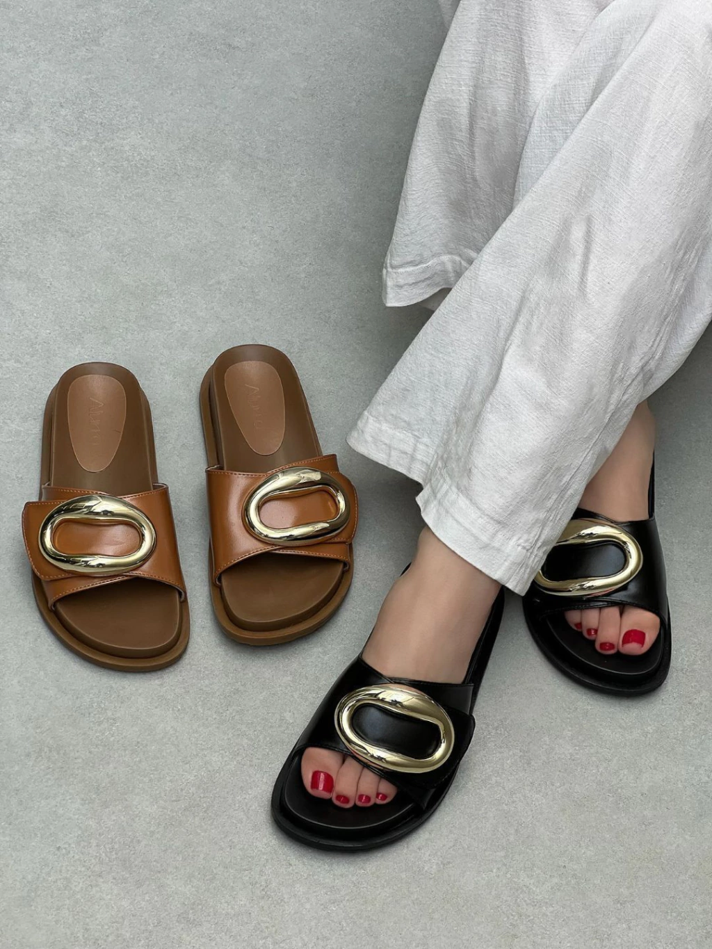 Se você procura um calçado que una conforto e estilo, essa opção é ideal. Com design moderno e versátil, ela se adapta facilmente a diferentes produções, trazendo praticidade sem perder a elegância. O detalhe em metal dourado garante um toque de sofisticação, transformando até os looks mais básicos em composições cheias de charme.