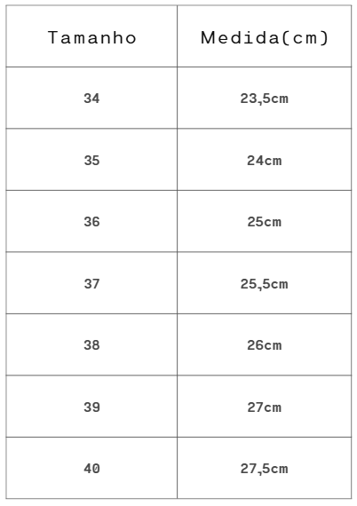 Tamanho: Forma Normal. Aconselhamos a compra de sua numeração de uso habitual.