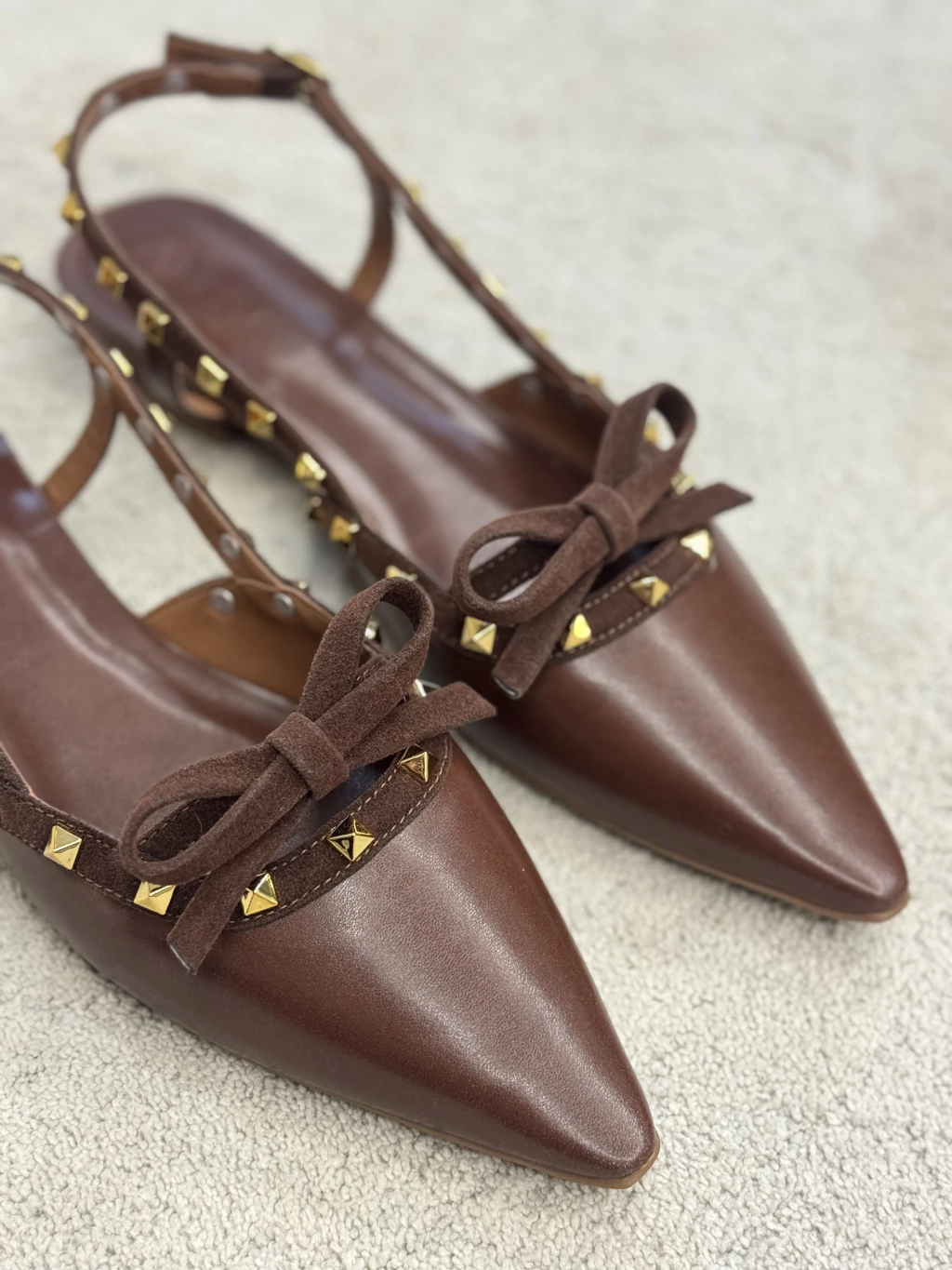 Com design elegante e acabamento impecável, o Slingback Donata traduz sofisticação em cada detalhe. O bico fino alonga a silhueta e o laço com tachas adiciona um toque moderno e feminino. É a escolha ideal para elevar o visual em ambientes formais ou momentos especiais.