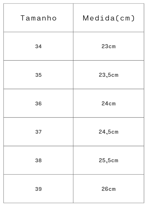 Tamanho: Forma Normal. Aconselhamos a compra de sua numeração de uso habitual