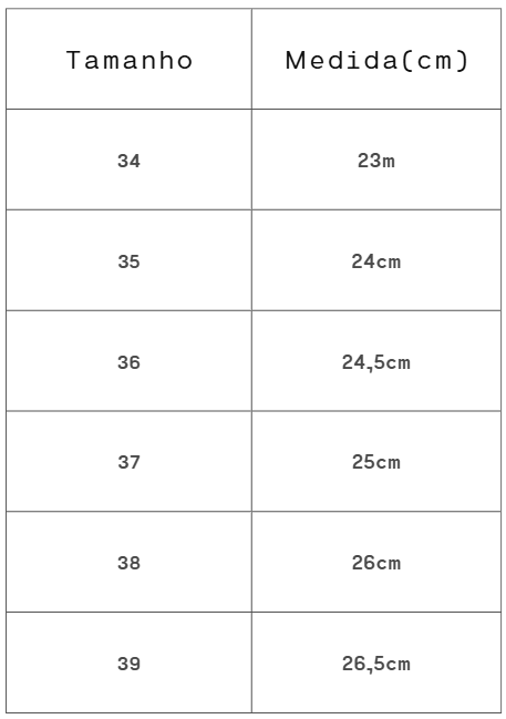 Tamanho: Forma Normal. Aconselhamos a compra de sua numeração de uso habitual.