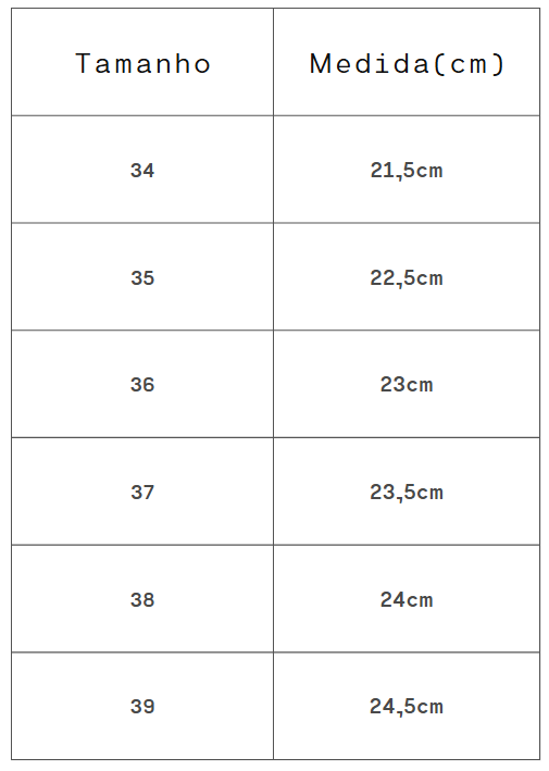Tamanho: Forma Normal. Aconselhamos a compra de uma numeração menor que a de uso habitual.