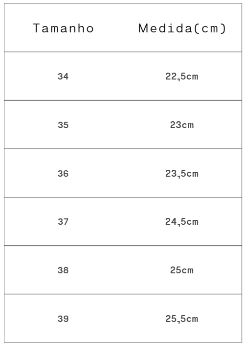 Tamanho: Forma Normal. Aconselhamos a compra de sua numeração de uso habitual.