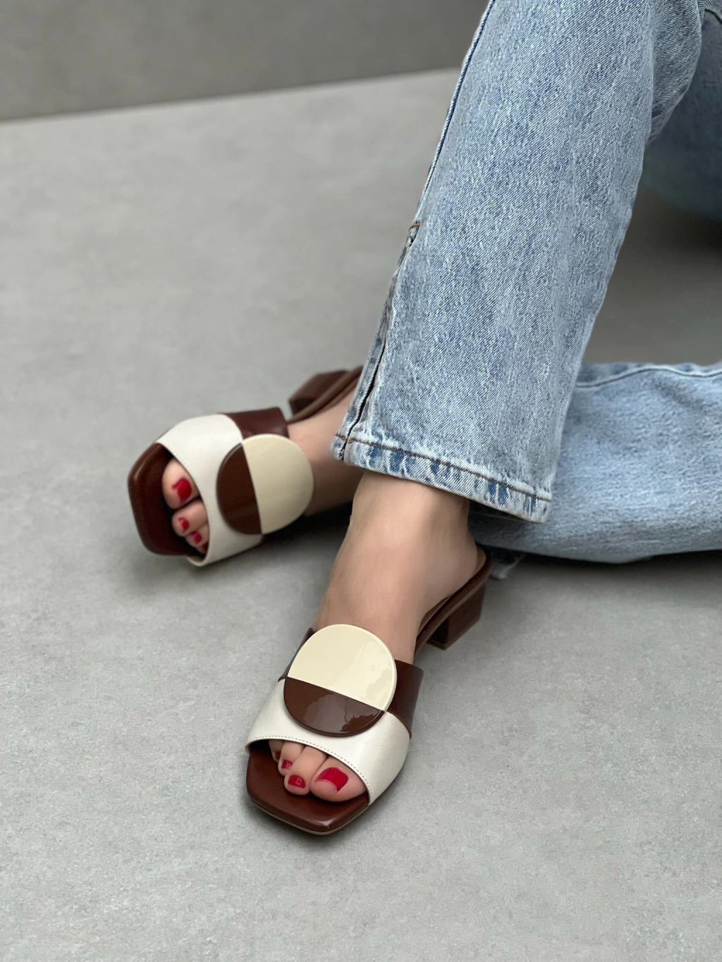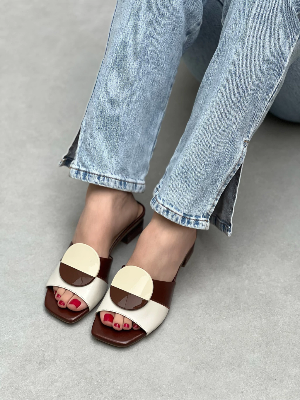 Esse modelo é a pedida certa pra quem gosta de marcar presença com elegância. O destaque fica por conta do detalhe geométrico em contraste, que traz um visual moderno e cheio de personalidade. O salto baixo garante conforto sem perder a sofisticação, tornando a peça versátil para diferentes ocasiões.